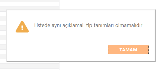 Logo Bordro Plus progrmaında meslek kodları tip tanımlarında her bir meslek kodu için yanlızca bir satır olmalı. Aynı değere sahip birden fazla satır bulunursa program aşağıdaki hatayı vermektedir.
