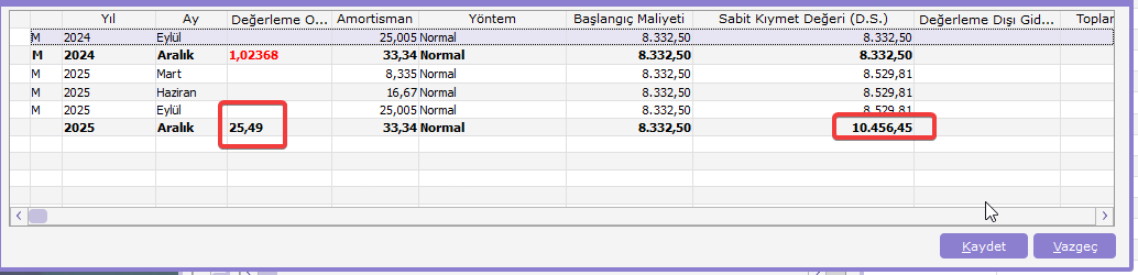 Logo Tiger Sabit kıymet yeniden değerleme işlemleri 2025 Aralık dönemine ait örnek